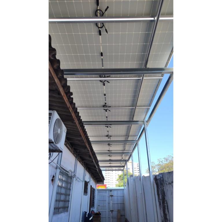 El proyecto en Casa Benedetti se centró en la instalación de una planta solar de 9.12 kWp para aprovechar al máximo la radiación solar disponible en Barranquilla. Con 16 paneles solares de alta eficiencia y un inversor off-grid, se garantiza un suministro constante de energía incluso durante la noche gracias a la batería de almacenamiento de 10.24kWh.