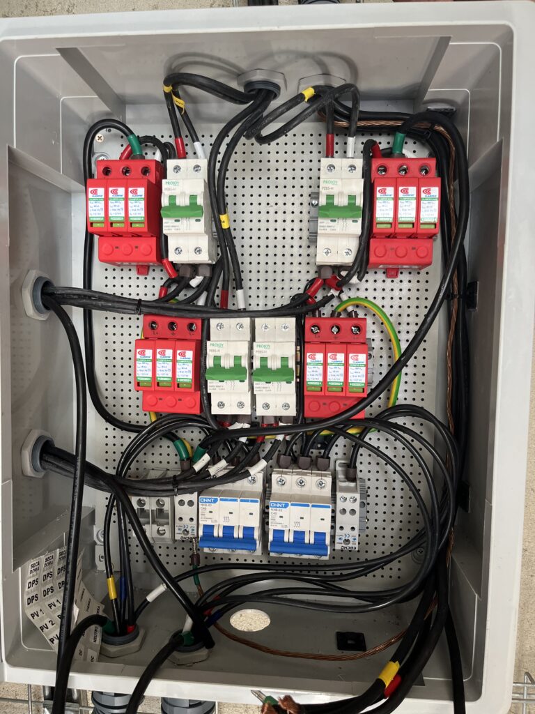 Tablero Modular de Protecciones Eléctricas DC/AC: Incluye dispositivos de protección contra sobretensiones (DPS).